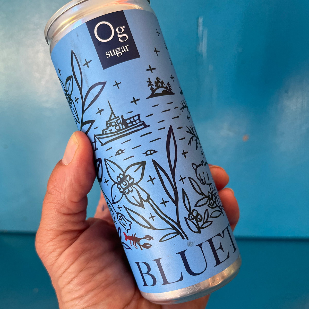 Pop a can, insert straw, garnish with mint. Sip, then add a splash of Cointreau. Orange, mint and blueberry make a happy threesome!